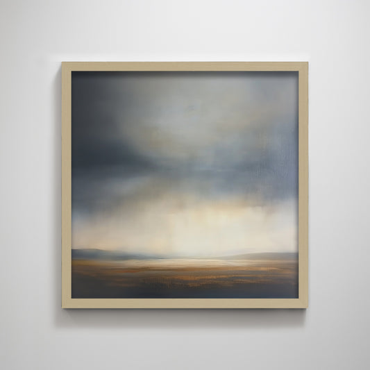 Abstract Beige Farmland Foggy Moody Cloud Nature Landscape Minimal Textured Art Print Wall Decor for Living Room