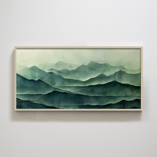 Abstract Green Mountain Landscape Textured Art Print Nature Wall Art Decor for Living Room Spaces