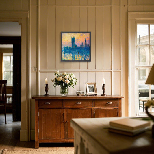 The Houses of Parliament, Sunset, Monet | Landscape Painting Wall Decor for Office Space