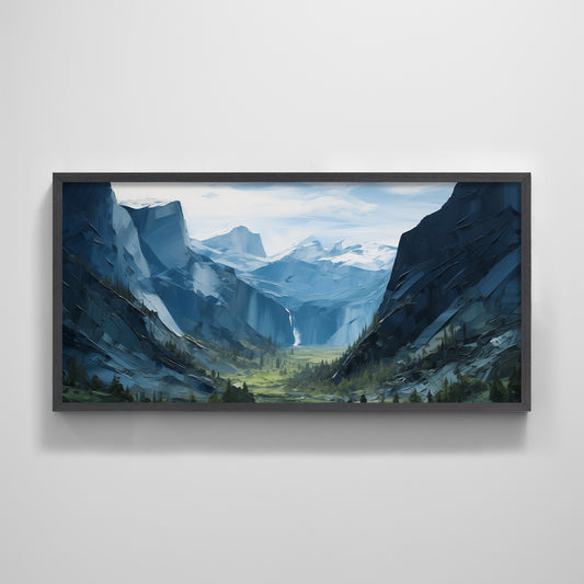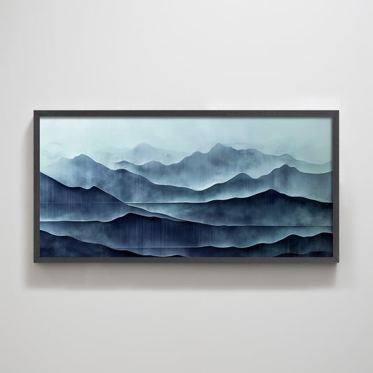 Framed Blue Mountain Peak Landscape Painting Texture Print Artwork Abstract Art Style Layered Mountain Peak for Living Room