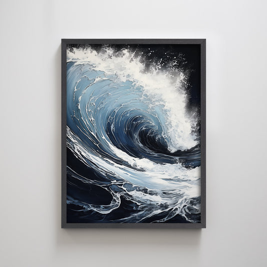 Framed Ocean Wall Art Texture Black Wave Painting Abstract Ocean Landscape Beach Art Wall Decor