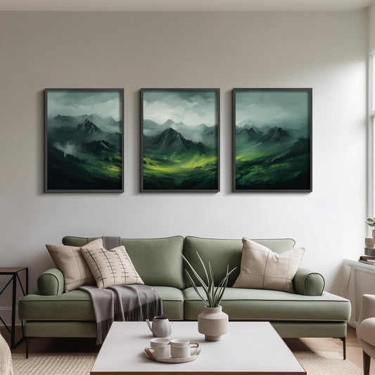 Green Mountain Landscape Wall Art Prints 3 Set for Living Room Nature-Inspired Decor(18x24 each)