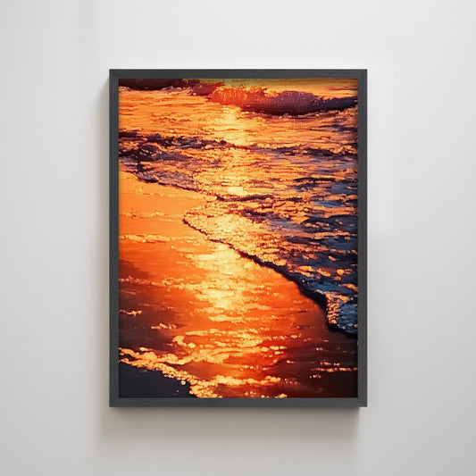 Golden Hour Sunset Beach Ocean Seascape Blurry Dreamy Abstract Textured Art Print Landscape Wall Decor