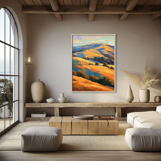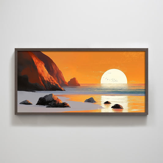 Half Moon Bay Ocean Seascape Beach Sunset Golden Hour Textured Art Print for Living Room Home Decor