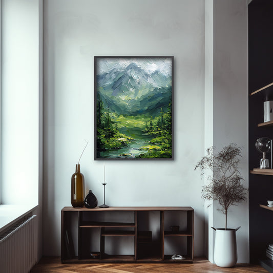 Green Forest Thick Impasto Textured Art Print Landscape Wall Decor Minimal