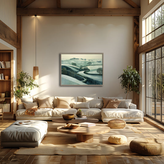 Green Farm Textured Art Print Landscape Wall Decor Minimal