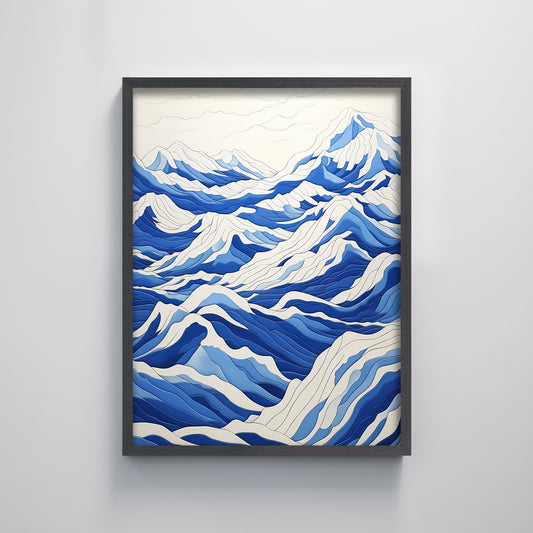 Modern Minimalist Landscape Decorative Painting Foggy Blue Mountain Texture Print Home Decor Painting