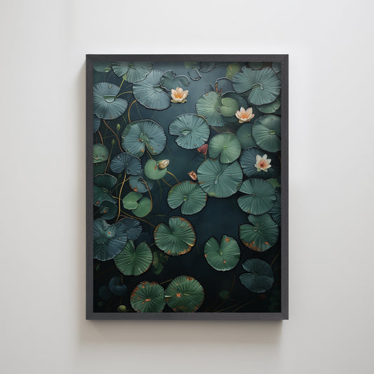 Lily's Pond Lotus Textured Art Print Zen Wall Decor for Living Room Peaceful Garden Style
