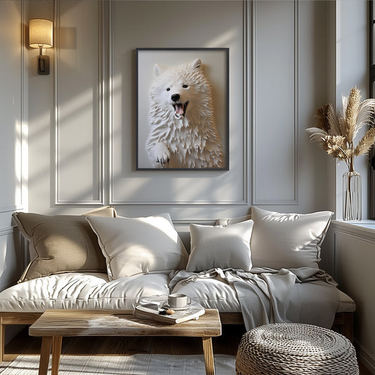 Textured Samoyed Dog Portrait Custom Art Print Wall Decor for Living Room Animal Lovers