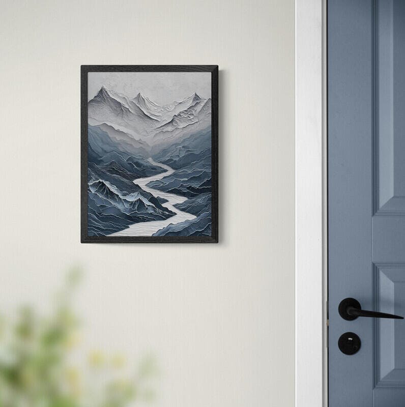 Original Framed Mountain Peak Painting Texture Print Wall Art Blue Mountain Peak Simple Contemporary Home Art Painting